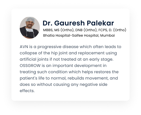 OSSGROW® is a treatment of AVN that cease the disease progression & restores mobility