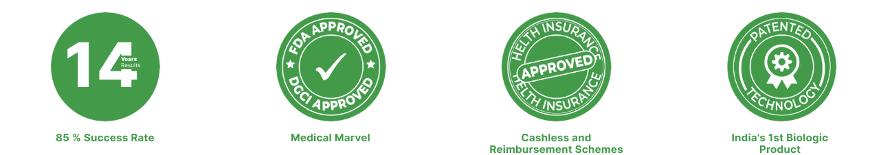 Bone regeneration treatment is an Indian FDA and DCGI approved biologic and personalized drug, thus completely safe for administration into humans for clinical use. These have been tested though successful completion of clinical trials and randomized studies.